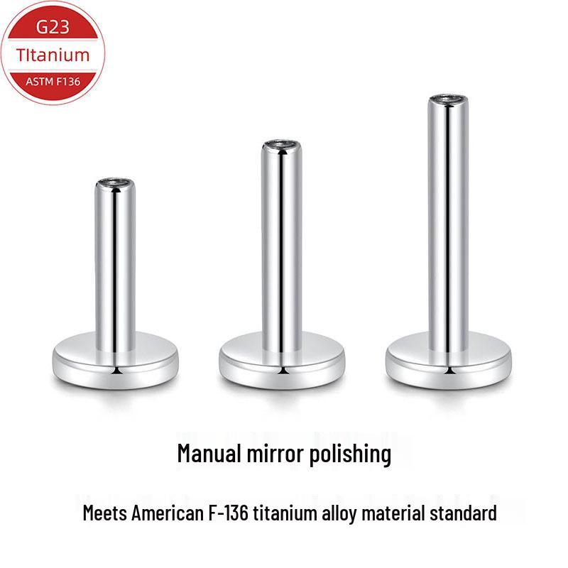 F136 Titanium Alloy Mirror Polished Internal Thread Earring Stud with Push-in Pin and Flat Back Post for Ear Cartilage or Lip.