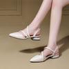 Fashion Summer 2024 Sandals for Women Office Work Outdoor Leather Pointed Toe Flat Rubber Buckles with Low Heels White No Heel Footwear