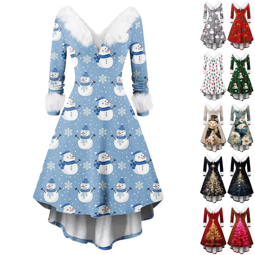 Vestidos estampados de fiesta de Navidad para mujer, vestidos vintage de Navidad a media pierna, vestidos casuales, vestidos de cóctel, vestidos de fiesta festivos