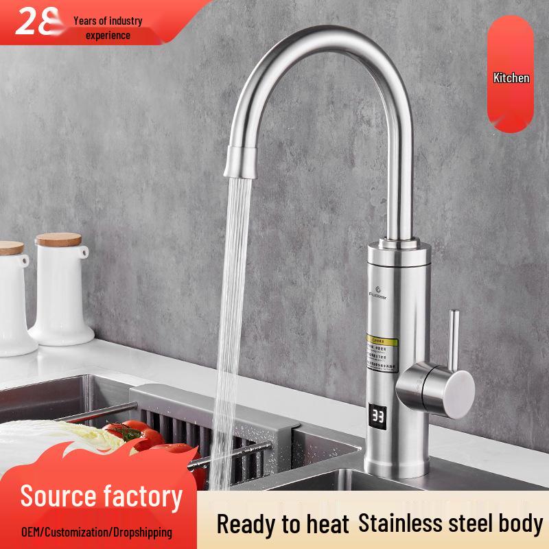 Instant Hot Water Faucet: 304 Stainless Steel, Intelligent Temperature Control, 3-Second Heating, Dual Cold & Hot Use, Digital Display
