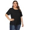 Plus Size Women's Solid Burnout Wavy-Edge Casual Round Neck Short Sleeve T-shirt