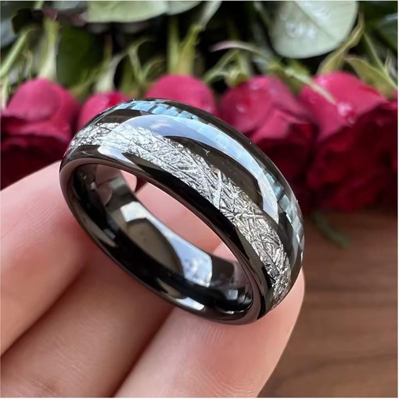 Anillos de Pareja de Acero Inoxidable con Acentos de Cielo Estrellado, Turquesa y Lámina de Oro