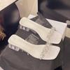 New silver crystal high heels women's spring 2025 fashion sandals wear thick heel rhinestone transparent sandals