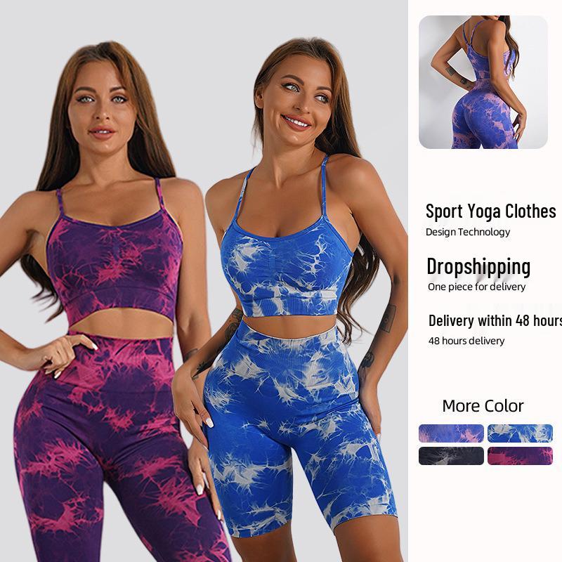 Conjunto de Yoga Tie-Dye de Cintura Alta: Pantalonesseamless de Melocotón para Levantar Glúteos y Chaleco Deportivo Jacquard