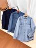 Men'S Long-Sleeved Denim Shirt Simple Solid Color Loose Casual Shirt Jacket