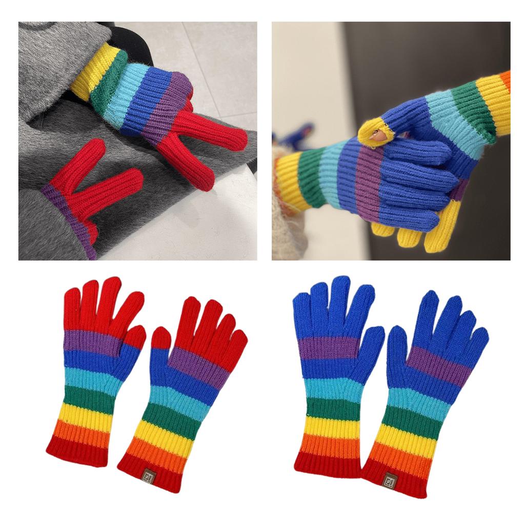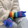Rainbow Color Striped Knitted Gloves Winter Full Finger Mitten Thicken Warm Christmas Harajuku Gloves for Girlfriend