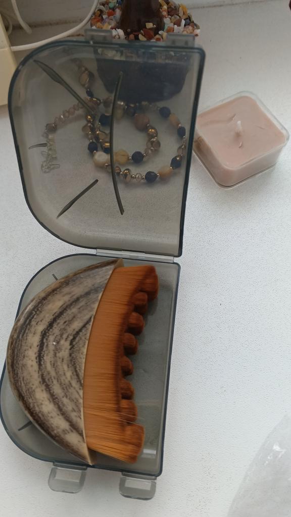 Cepillo facial linfático (similar al cepillo Cecily Braden, que cuesta alrededor de $50) 📌Cómo utilizar? Si estás planeando comenzar a usar un exfoliante Gaucha o hacerte un masaje facial, este cepillo hará un gran trabajo preparando tu rostro para estos tratamientos.. Mueve el pincel desde la barbilla hacia afuera, desplazándolo suavemente hacia el cuello y luego a la clavícula. En la frente, haz lo mismo: desde el centro hacia afuera. Los movimientos deben ser suaves y fluidos.. No presione demasiado fuerte el cepillo. 📌Cita: Estimula el flujo linfático, reduce la hinchazón, favorece la desintoxicación de la piel, limpia, ayuda a abrir los canales linfáticos, permitiendo que los aceites y sueros se absorban mejor.. Al trabajar con pincel no se necesitan productos: ni cremas, ni sérums. 📌Frecuencia de uso: 3-4 veces por semana, duración 5-10 minutos El momento óptimo es por la mañana. La eficacia de este masaje está comprobada. Estudios científicos demuestran que la presión suave y los movimientos específicos pueden mejorar la circulación sanguínea, ayudar al sistema linfático a eliminar toxinas e incluso promover la producción de colágeno, la proteína que suaviza y reafirma la piel.. 📌Descripción: Un cepillo elaborado con pelo sintético suave, con el lado exterior arqueado y estriado. Viene en un estuche o una bolsa.