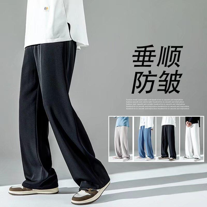 Ice pants men's loose straight vertical solid color simple youth casual trousers