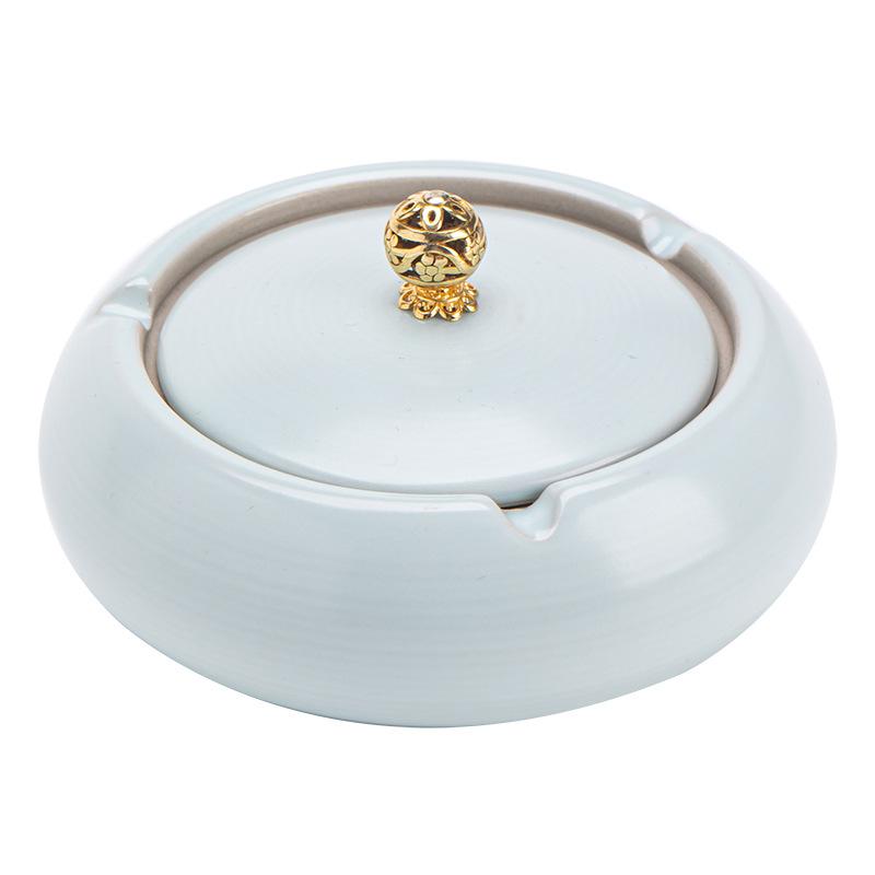 Ru kiln Tianqing ashtray household ceramic with cover anti-fly ash ashtray creative personalized tea room tea ceremony accessories