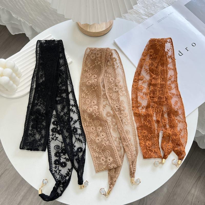 Women's Gentle Parent-Child Daisy Lace Pendant Hair Band Multi-Functional Scarf Silk Scarf Belt Long Thin Narrow Ribbon