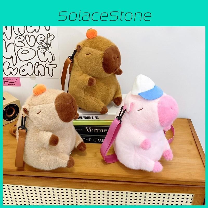 This plush bucket bag features a charming capybara design, crafted from soft polyester , it combines urban minimalism with playful appeal. The round shape includes a zip closure, nylon lining, and a zippered inner pocket. Ideal for daily use and casual outings, it offers easy maintenancesimply wipe clean with a damp cloth.