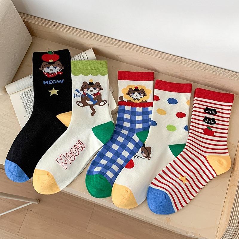 Cute Cat Striped Socks for Women, Mid-calf Socks for Autumn and Winter, Trendy for Women, Dopamine Cartoon Boneless Women's Socks