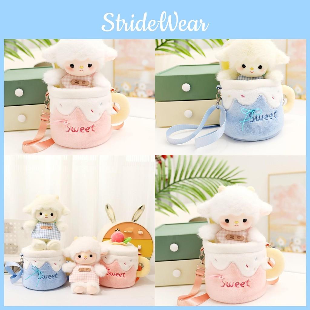 Cup Cute Cartoon Design Sheep Plush Toy Doll Children Crossbody Bag For Gift