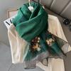 Marca de Lujo Seda Lana Bufanda Mujer Bordado Chal y Wraps Foulard Femenino Hijab Bandana bufandas para señora flores estolas de playa