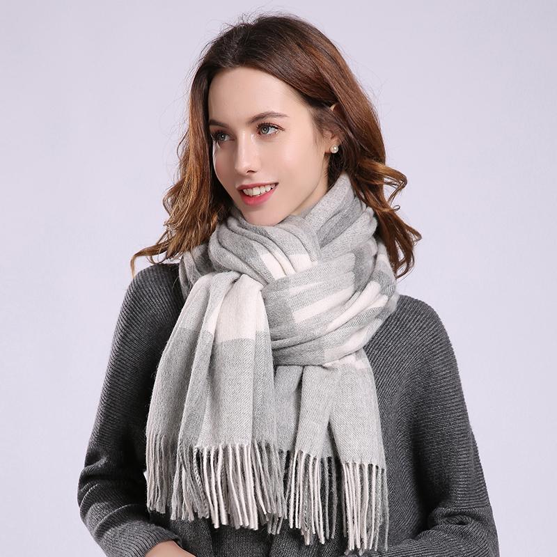 Women Plaid Wool Scarf Winter Warm Large Fine Wool Shawls Blanket Scarf Luxury Design Fringes Plaid Sheep Wool Cashmere Scarves