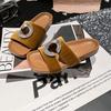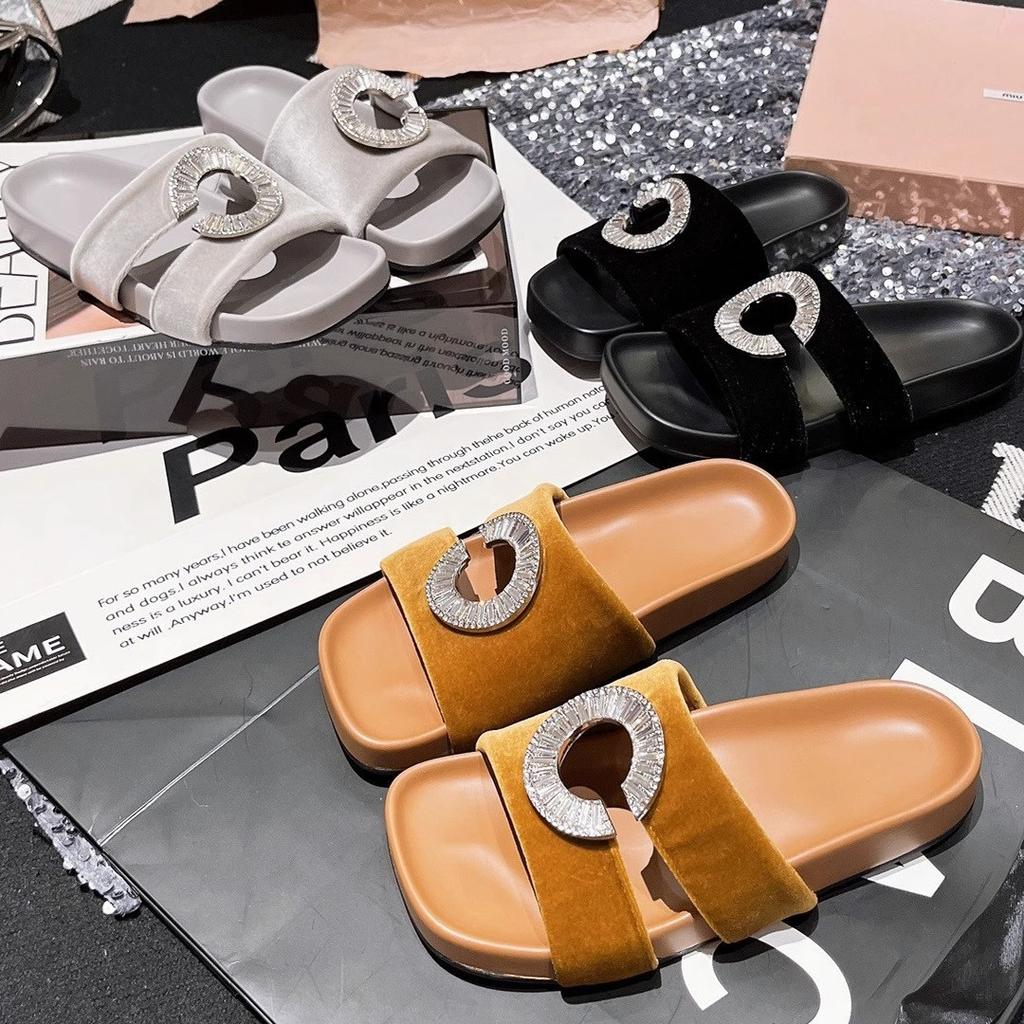 2025 new golden velvet rhinestone open-toe sandals, wear high-end hole slippers, flat-soled women's shoes tide