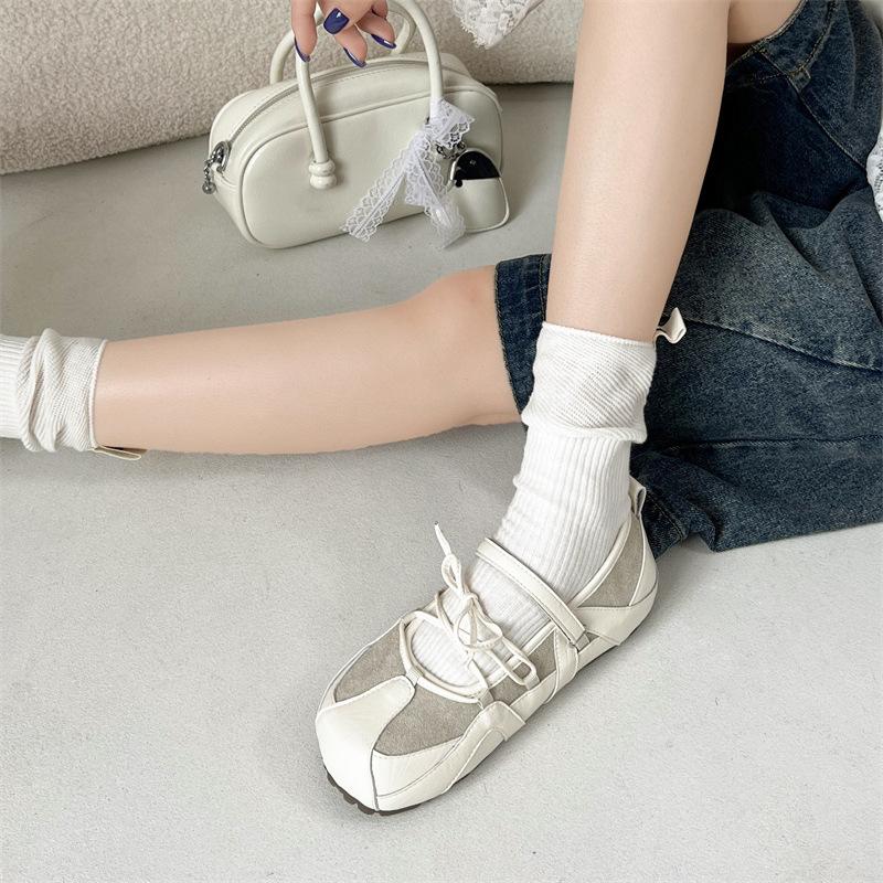 White retro shallow mouth inner height increase sports Mary Jane single shoes women's summer 2025 new skirt flat-bottomed German training shoes