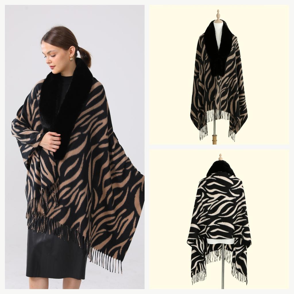 New Fur Collar Cashmere Shawl Shawl Scarf For Woman Warm Tassel Shawls Fashion Long Wraps Thicken Pashmina Zebra Print Scarves