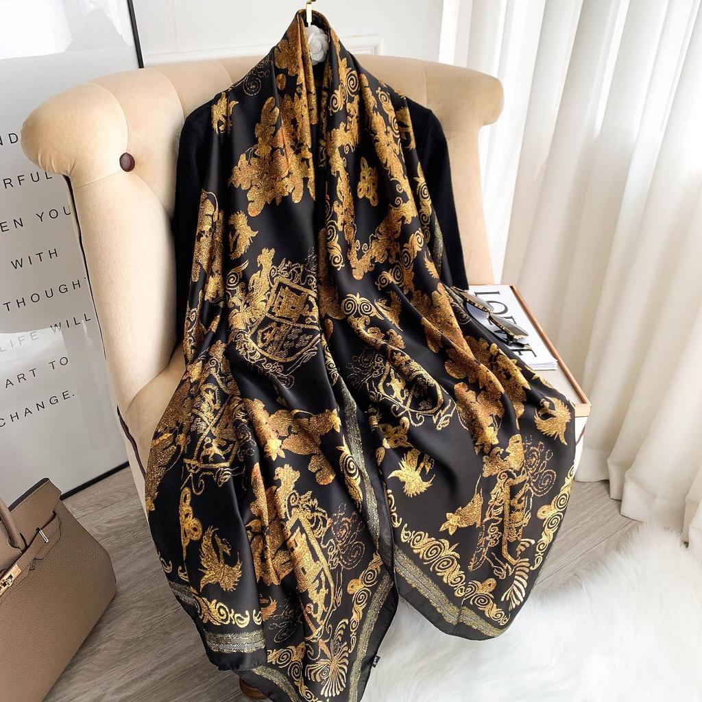Bufanda de seda de invierno para mujer, chal de playa con estampado de diseño lujoso, bufandas, Foulard liso de moda, Hijab femenino