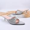 Silver sequined slippers women's summer open-toed sandals pointed low-heeled one-word drag with skirt cool slippers