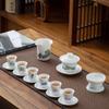 High white porcelain Kung Fu tea set, household blue and white ceramic tea maker, cover bowl teacup, high-end tea set, complete set