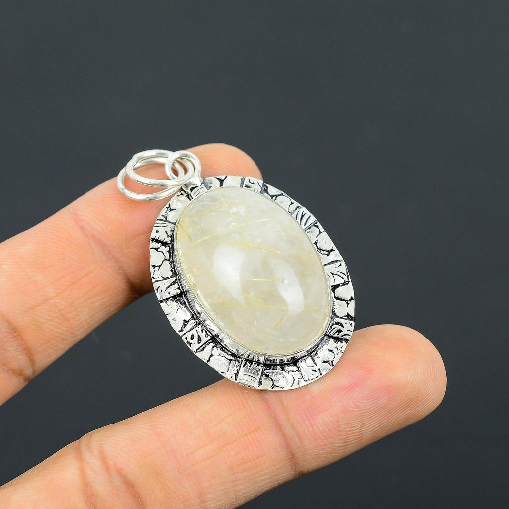 Anniversary Gift For Her Natural Golden Rutile Gemstone Pendant 925 Silver