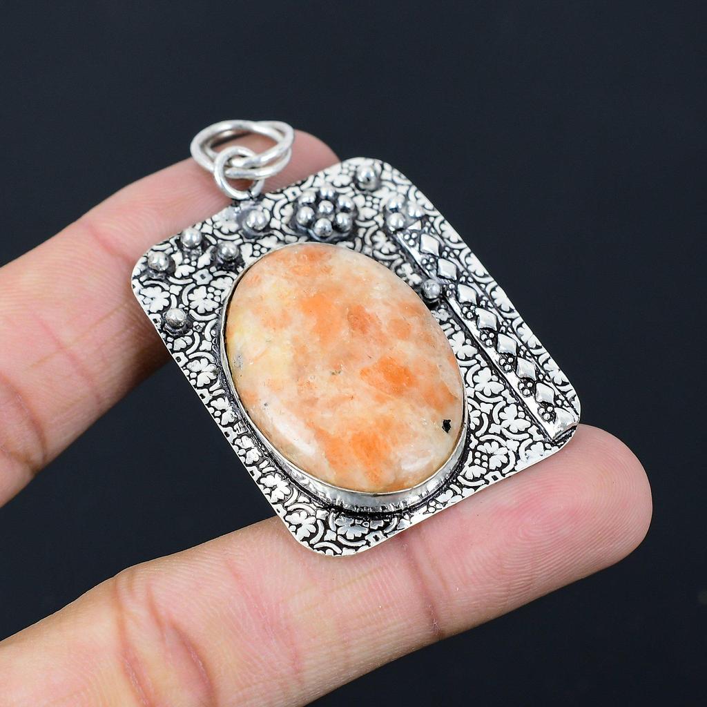 Colgante de Piedra Solar Natural Hecho a Mano Plata de Ley 925 Joyería India