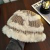 Rabbit hair knitted hat children's autumn and winter new big head circumference ear protector wool hat loose thickened warm fisherman basin hat tide