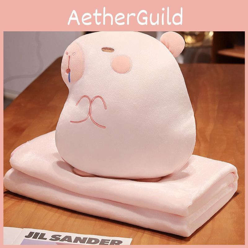Plush Cartoon Capybara Toy Pillow Blanket Combo Convenient Multi Functional Doll
