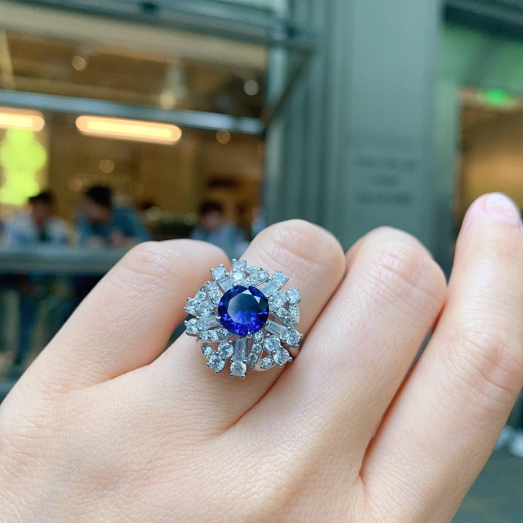 Jewelry Simulation Tanzanian Blue, Sapphire Retro Style Versatile Ring Shining Diamond-Set Women'S Ring