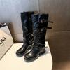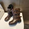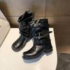 Thick-soled thick-heeled belt buckle pleated medium boots women's 2025 autumn new trousers Martin boots Western cowboy short boots