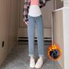 8 Pregnant women's thickened elastic lamb wool jeans, winter dad pants, warm outer wear, casual belly support pants