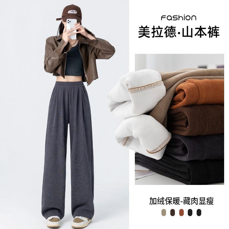 Maillard autumn and winter thickened thermal pants fleece sweatpants high waist straight pants casual wide-leg pants