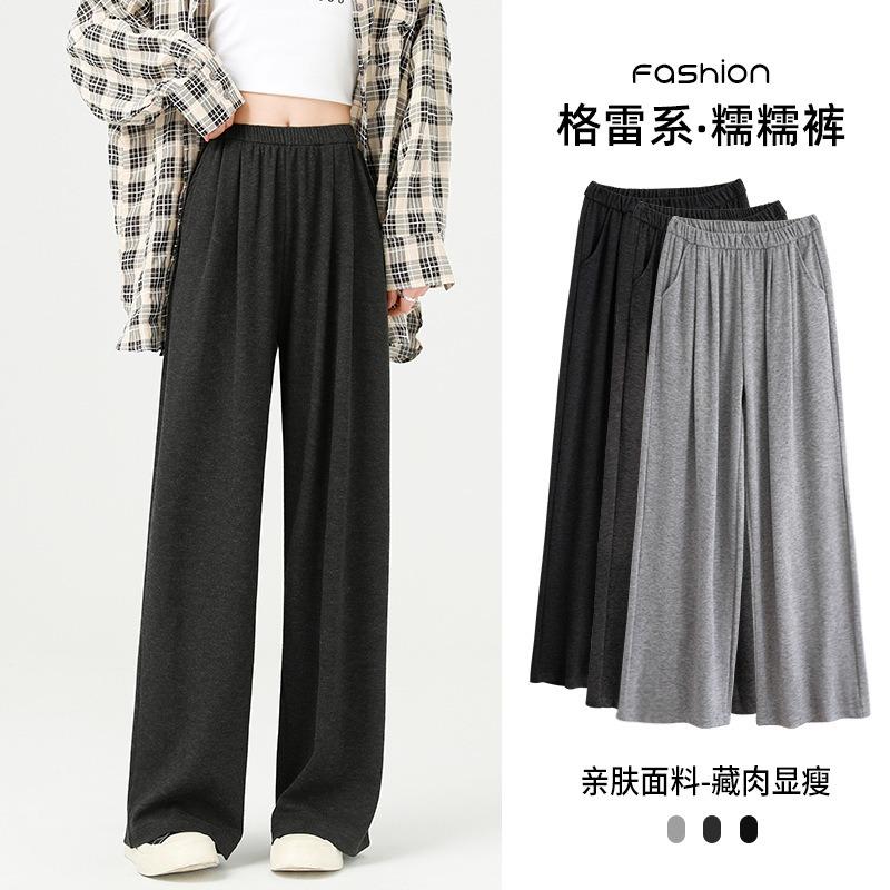 Gray glutinous rice pants women's spring and autumn soft waxy new narrow version high waist drape loose casual straight wide leg pants