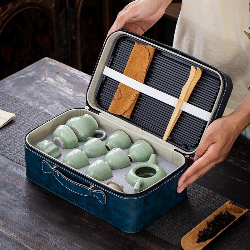 Travel tea set, portable bag, complete set of office tea, practical ceramic, Kung Fu tea tray, teapot set, hand gift pottery