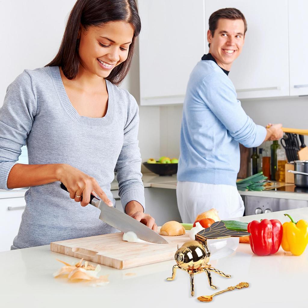 Recipiente Creativo con Forma de Abeja para Almacenar Miel, Dispensador, Tarro de Miel de Abeja, Tarro de Especias y Condimentos de Cocina con Cuchara y Soporte de Almacenamiento