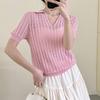 Lapel hollow design knitted sweater short-sleeved women's summer new simple and versatile thin top thin