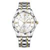 Men's Luminous Waterproof Quartz Watch with Rivet Steel Band & Double Calendar Display