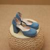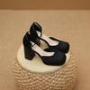 3359-1 Temperament Muse waterproof table square head hollow high heels women's new fashion word with thick heel single shoes