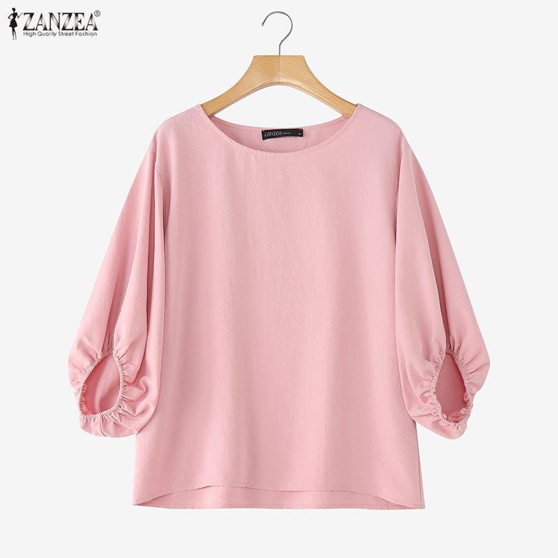 ZANZEA Blusa informal de mujer con cuello redondo, color liso, manga 3/4
