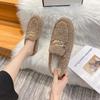 Fashion Metal Chain lambswool slippers women fur mules large size 40-43 winter shoes woman flat closed toe warm plush slides mujer 2025