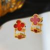 Pendientes de Trébol de Cuatro Hojas de Alta Versión para Mujer Oro Rosa de 18k Ágata Negra Nácar Blanco Pendientes