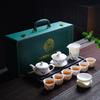 Embossed tea set, simple vegetarian-fired suet jade porcelain Kung Fu tea set, gift box set, six cups for office home gifts