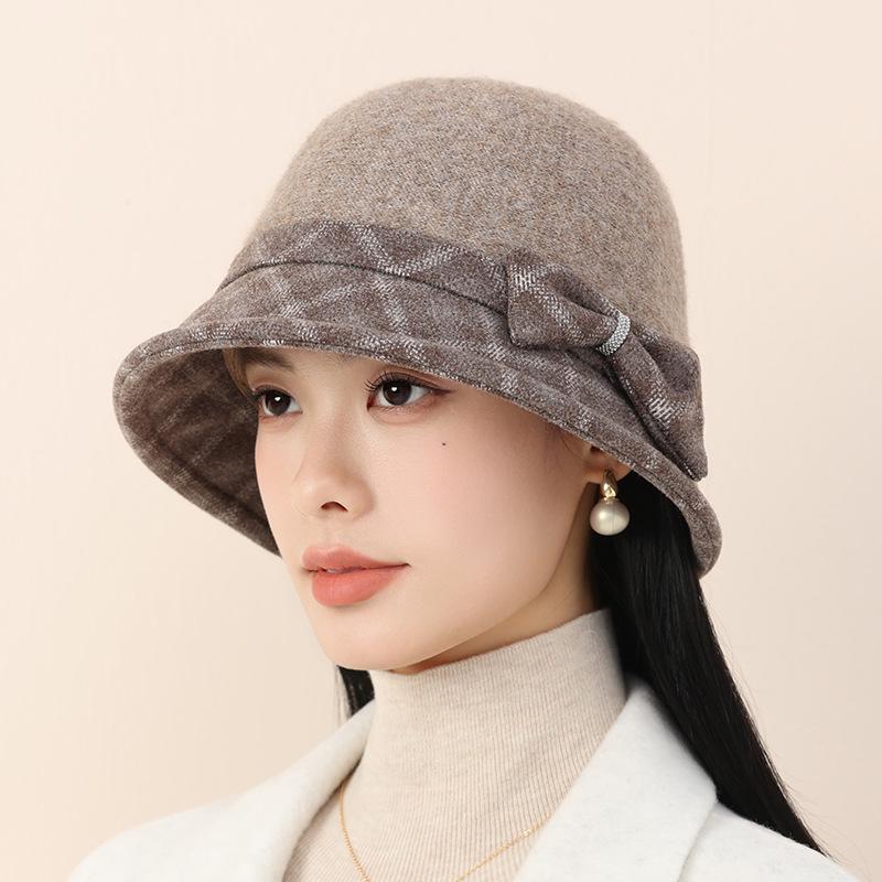 Autumn and Winter Warm Elegant Temperament Wool Woolen Basin Hat Retro Bucket Hat Windproof and Warm