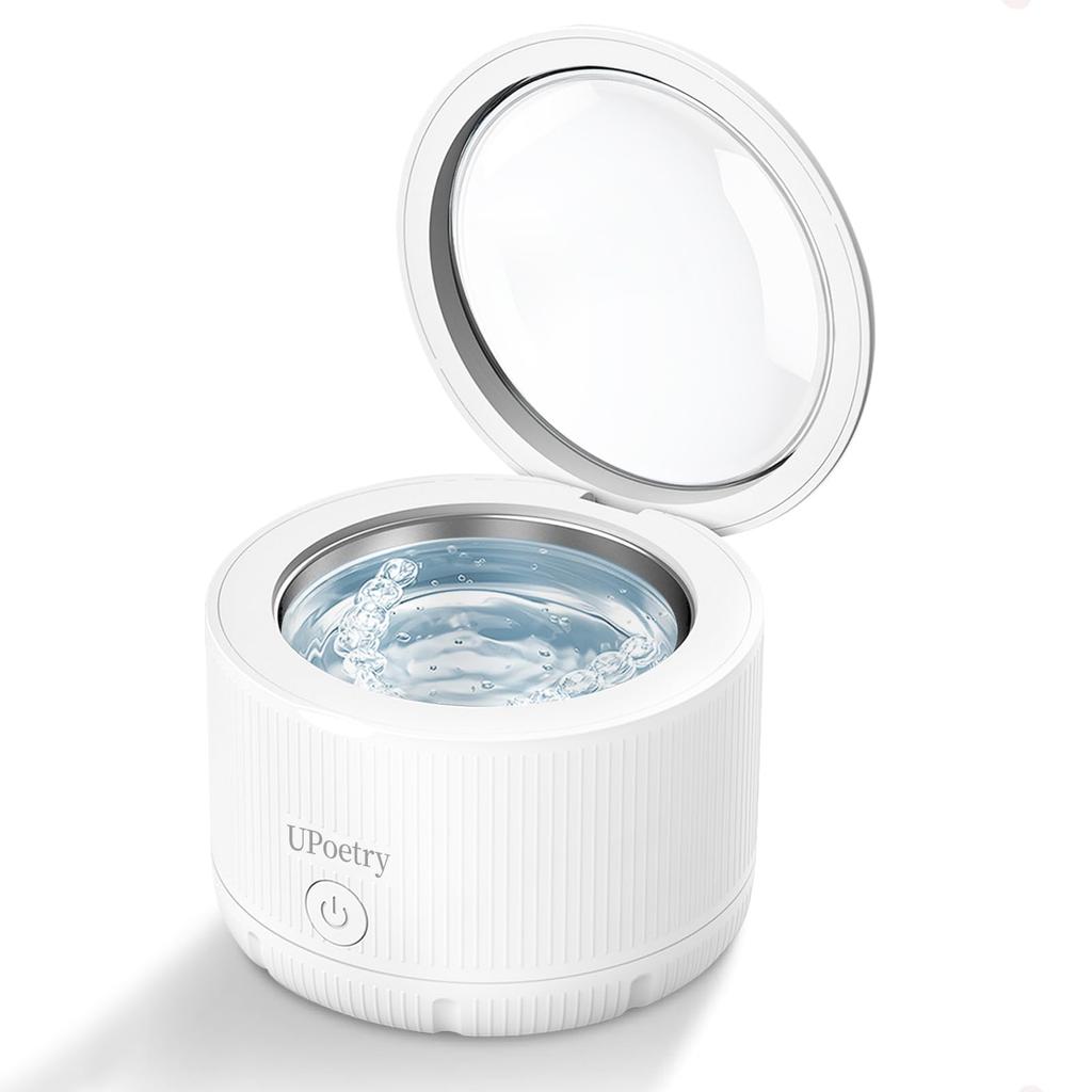 This denture-specific ultrasonic cleaner features an ultra-compact 150ml capacity, saving water. Its circular design, approximately 10cm in diameter, is ideal for home, office, and travel. It uses 45kHz high-frequency ultrasonic waves to penetrate even the finest parts of dentures and efficiently remove stubborn stains and food debris. It is compatible with not only dentures, but also various oral appliances such as night guards, orthodontic appliances, and retainers. Operation is extremely simple: just press a single button to start and it automatically shuts off after approximately 5 minutes. This eliminates the worry of forgetting to turn it off, making it safe for elderly users. The transparent lid allows you to see the foaming and dirt removal process in real time during cleaning, ensuring hygienic denture cleaning. Furthermore, the adapter and 304 stainless steel inner tub are certified by Japan's PSE (Pollution Control Standard) certification, ensuring both electrical safety and material hygiene. Support is available from our dedicated Japanese staff, so please contact us at any time with any questions. Enjoy clean dentures with this versatile ultrasonic cleaner, perfect for everyday use at home or when traveling or on business trips.