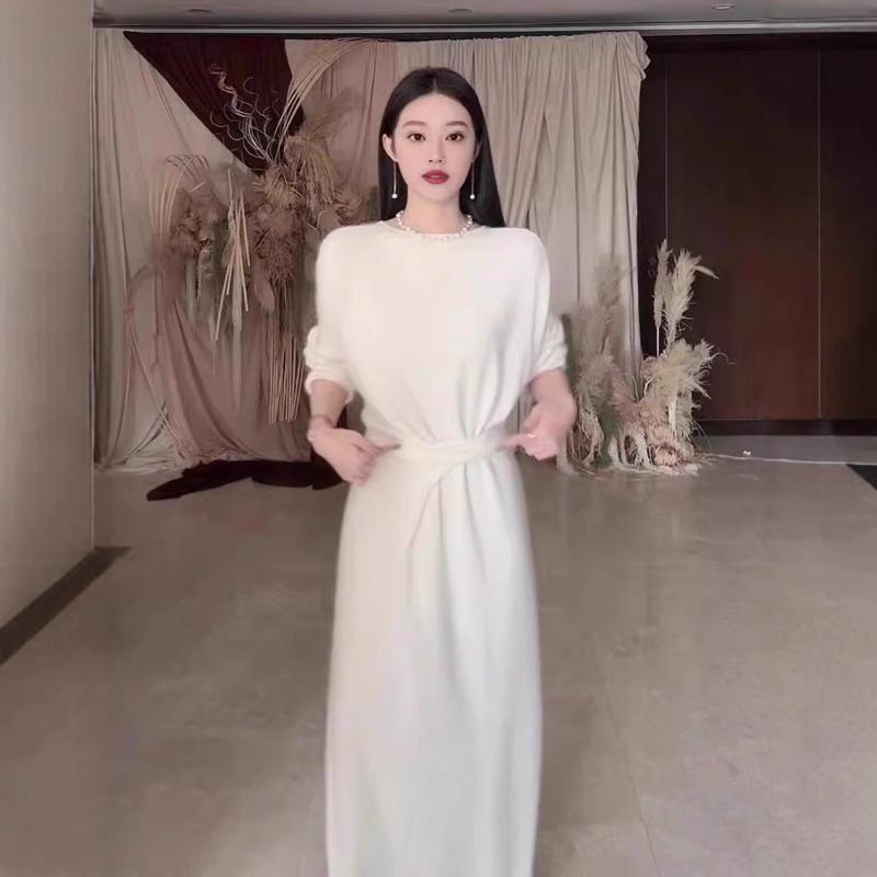 [] Fujia daughter high-end wear with white knitted dress inside women's new autumn sweater skirt
