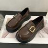Zapatos de cuero negro de suela gruesa, nuevos mocasines de cuero auténticos de otoño, zapatos de mujer, zapatos Mary Jane japoneses de estilo preppy
