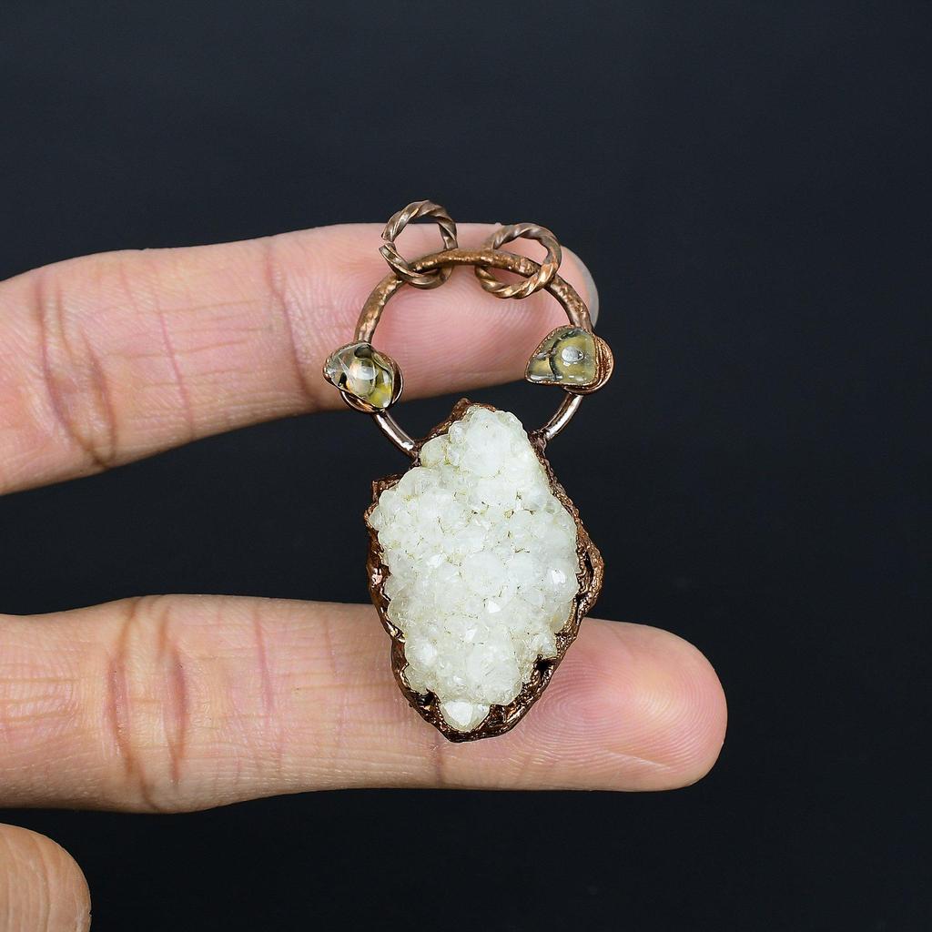 Clear Solar Druzy Jewelry, Copper Electroformed Pendant Handmade Gemstone Jewelry, Gifts For Wife Brand New Pendant