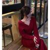 Christmas red knitted dress women's autumn and winter base with retro temperament over the knee sweater skirt