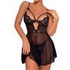 Sexy Lingerie Erotic Crotchless Lingerie With Thongs Set Women Low Cut Neck Silk Nightdress Sleeveless Sling Underwear Sexy Bra